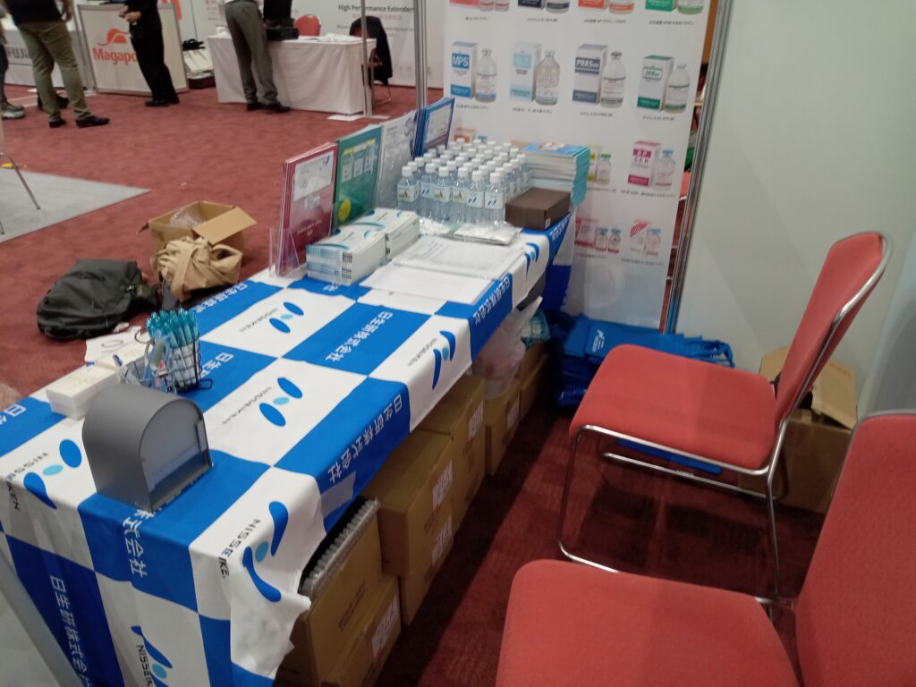 床に書かれたブース番号を頼りに、日生研のスペースを発見しました。