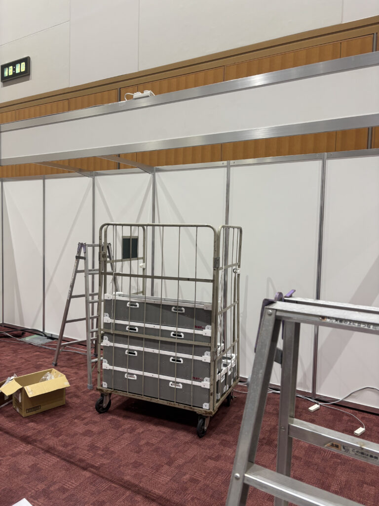 業者さんがブースを設営している真っ最中で、まるで工事現場のような雰囲気📦