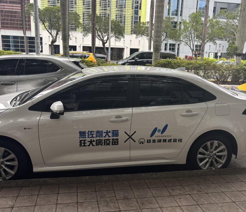 なんと、台湾代理店の方が日生研のスペシャルな広告車を制作してくださっていました🚗。感謝、感謝です!