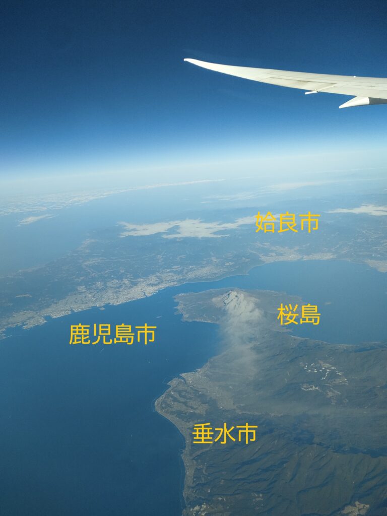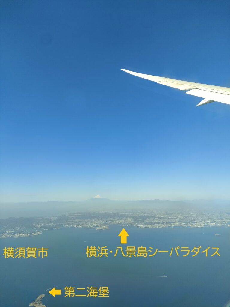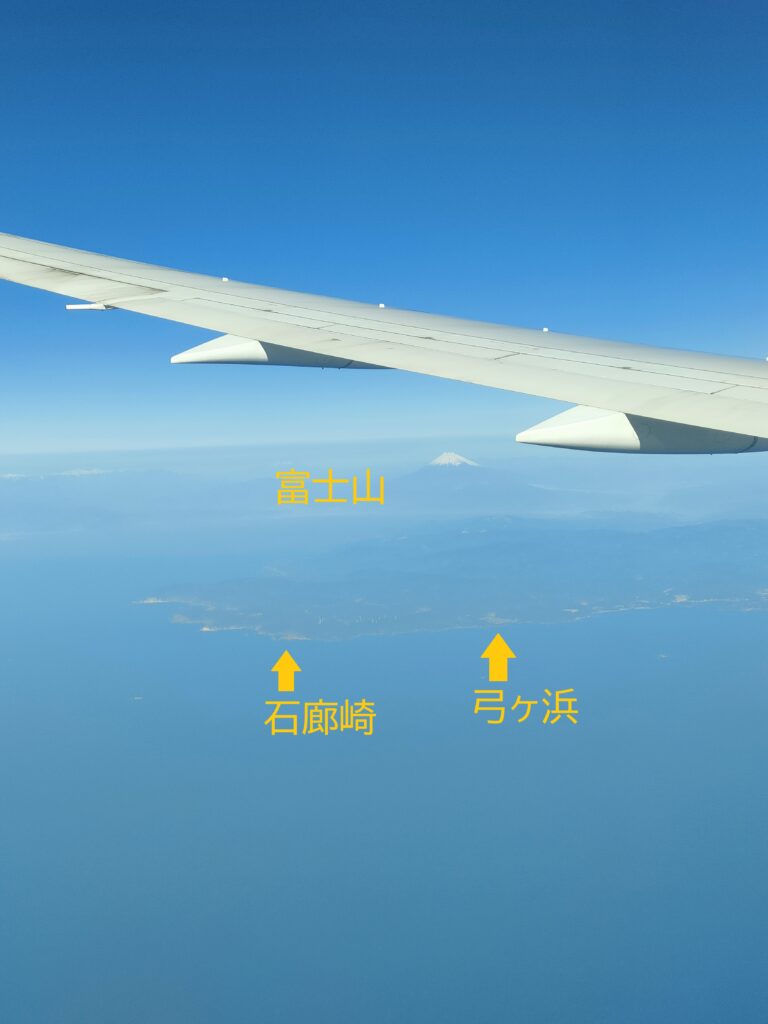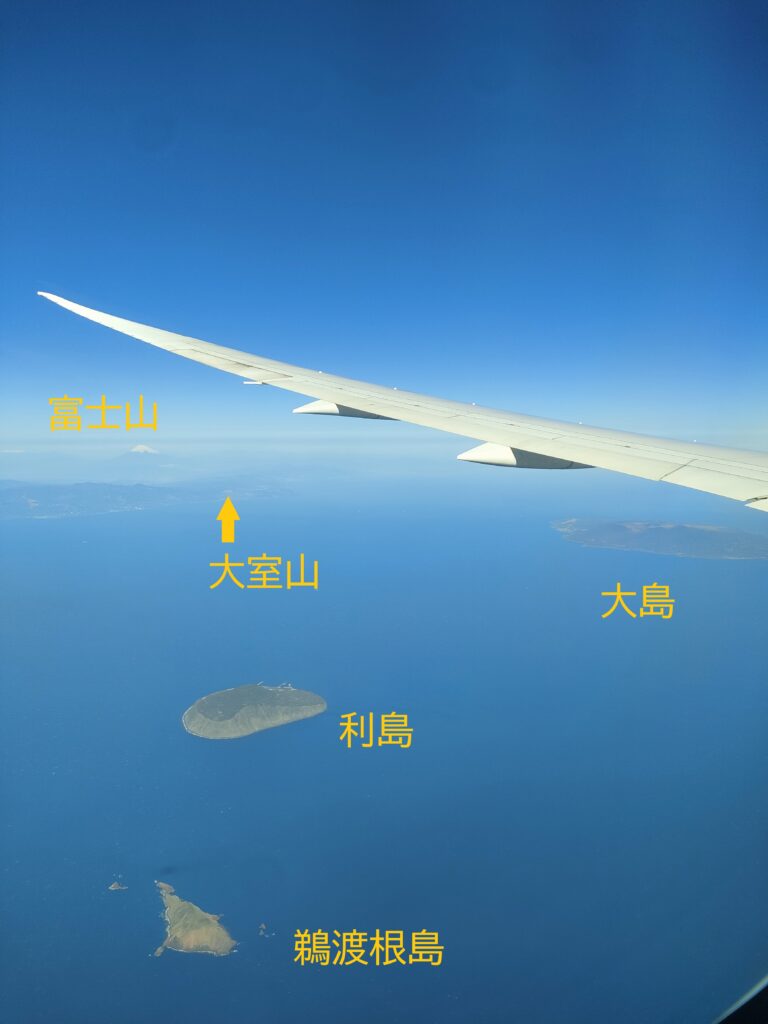 話は変わりますが、帰国便の機内から日本の風景を楽しむことができました。往路便は天候が悪かったことや飛行ルートの関係でほとんど見えなかったのですが、帰国便は運よく日本の景色が良く見えたのでいくつかご紹介します。