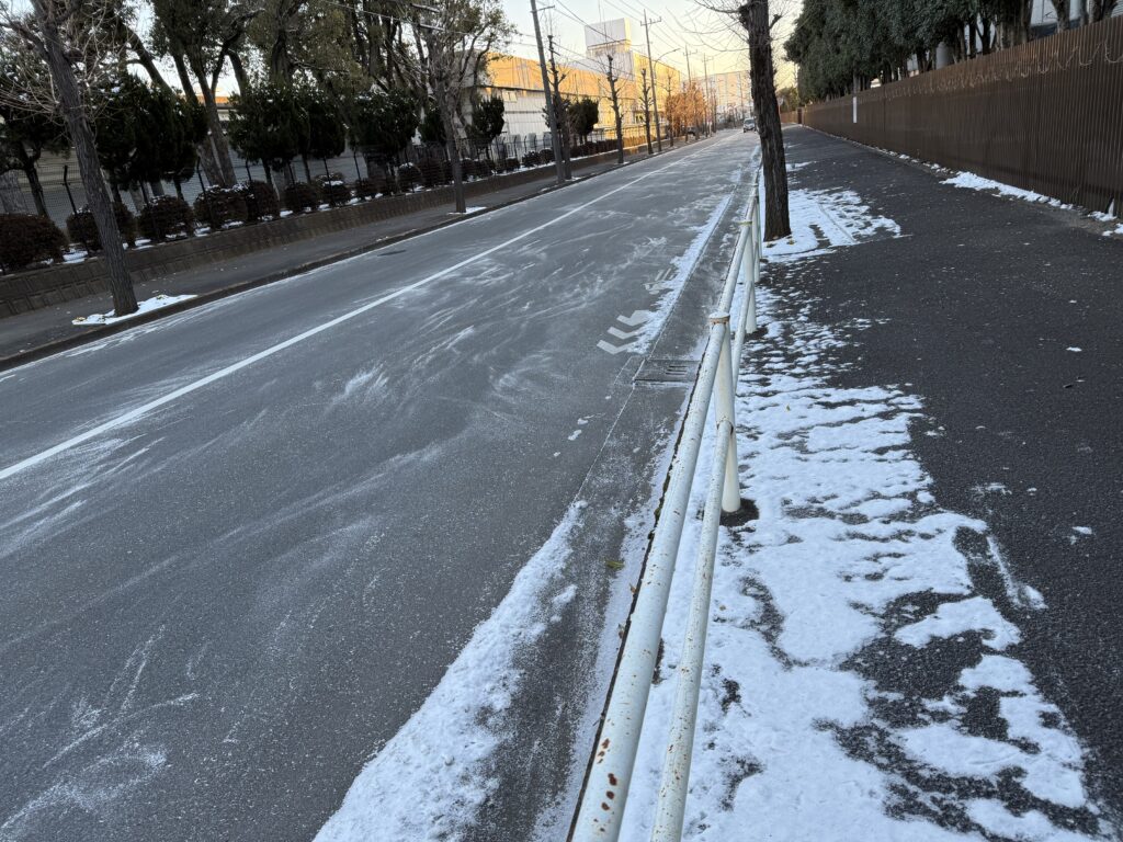 会社の近くの道路には白いモヤのようなものが出ていたそうで、「これはすごい寒さだな」と思ってまたパシャリ。